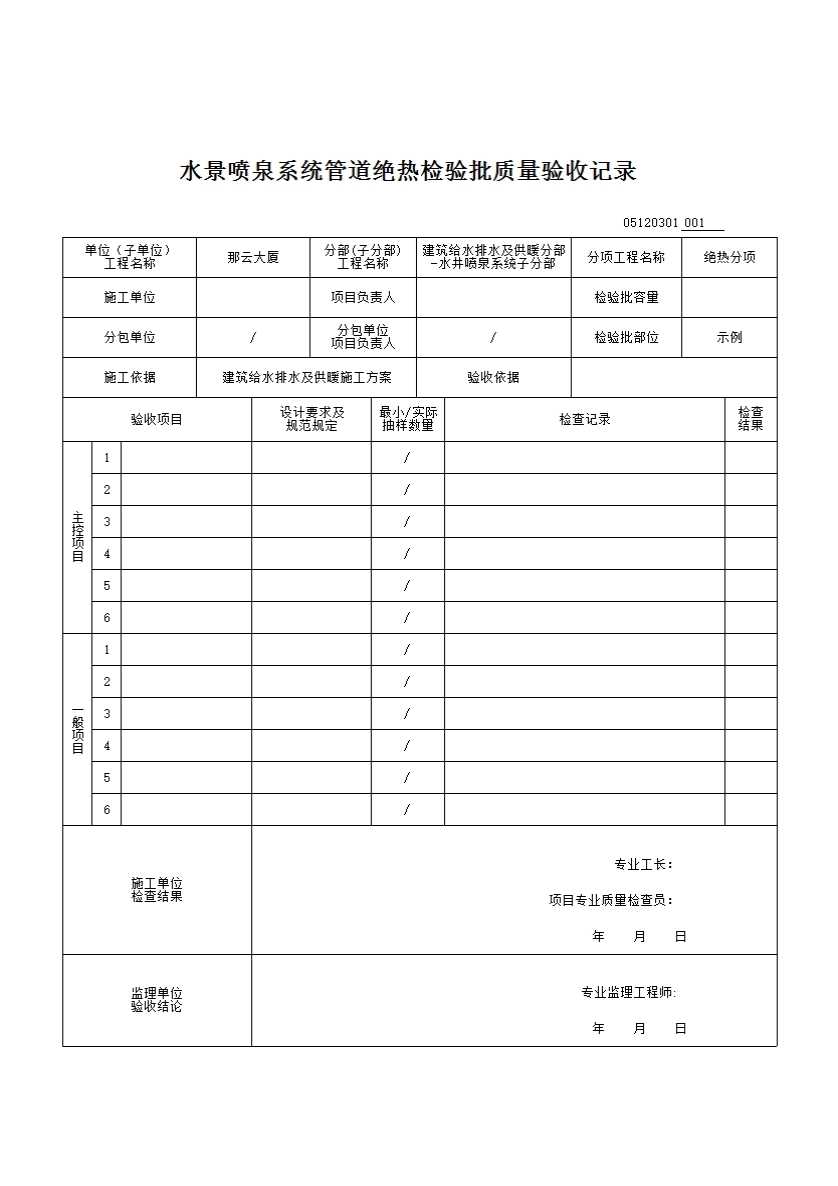 表格名称:05120301_水景喷泉系统绝热检验批质量验收记录