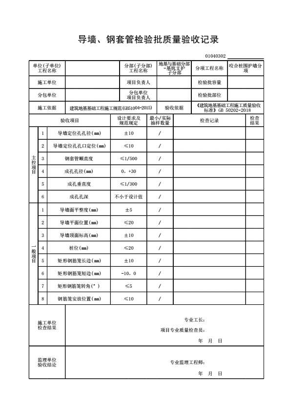 7.4.1 施工前,应对导墙的质量和钢套管顺直度进行检查。