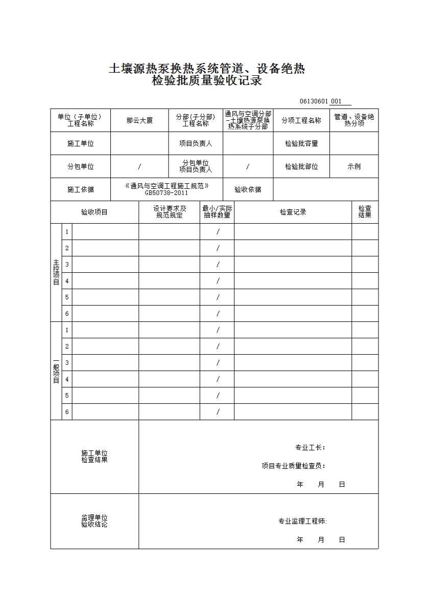 表格名称:06130601_土壤源热泵换热系统管道、设备绝热检验批质量验收记录