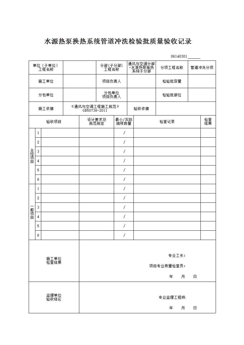 表格名称:06140301_水源热泵换热系统管道冲洗检验批质量验收记录