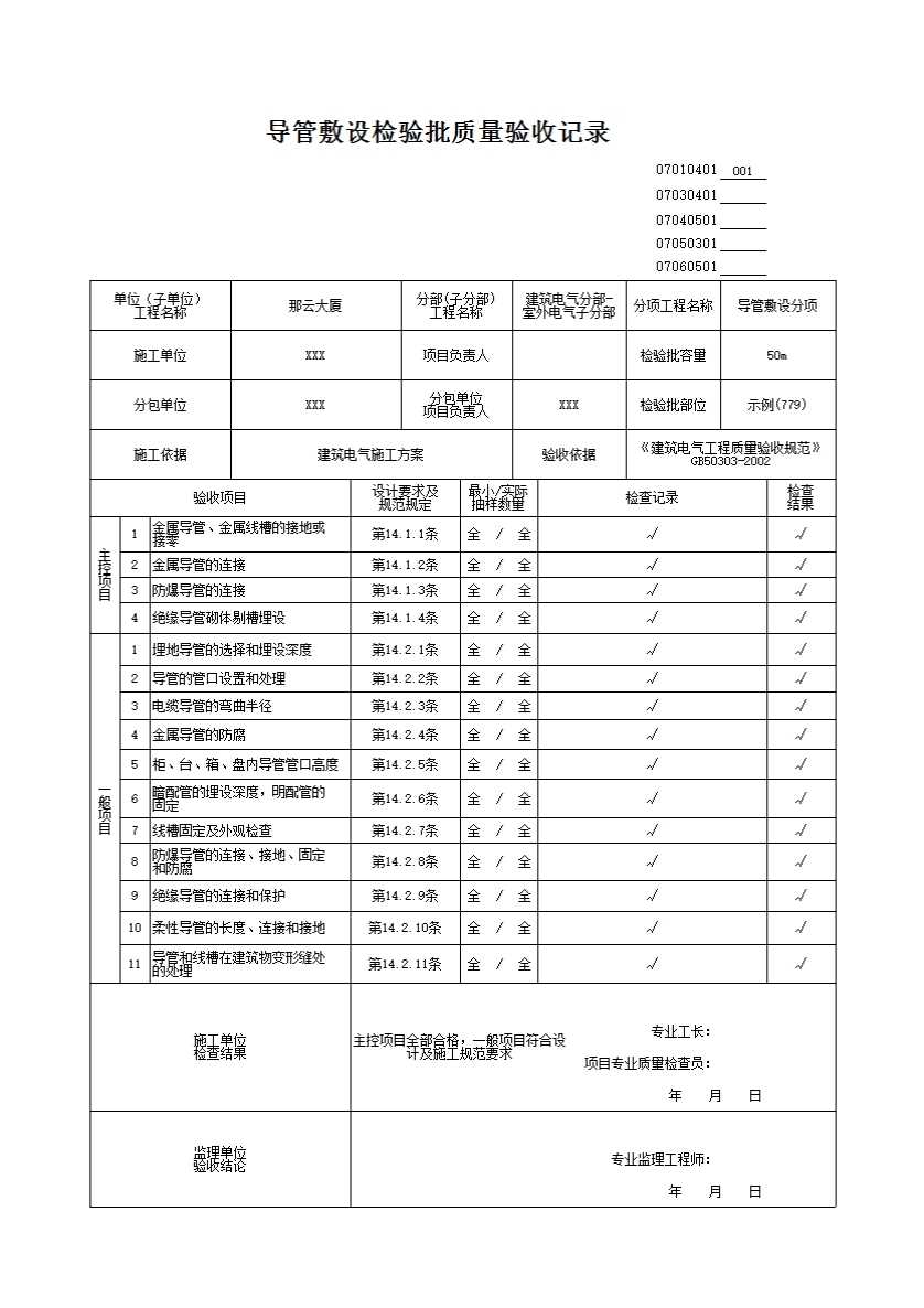 导管敷设检验批质量验收记录