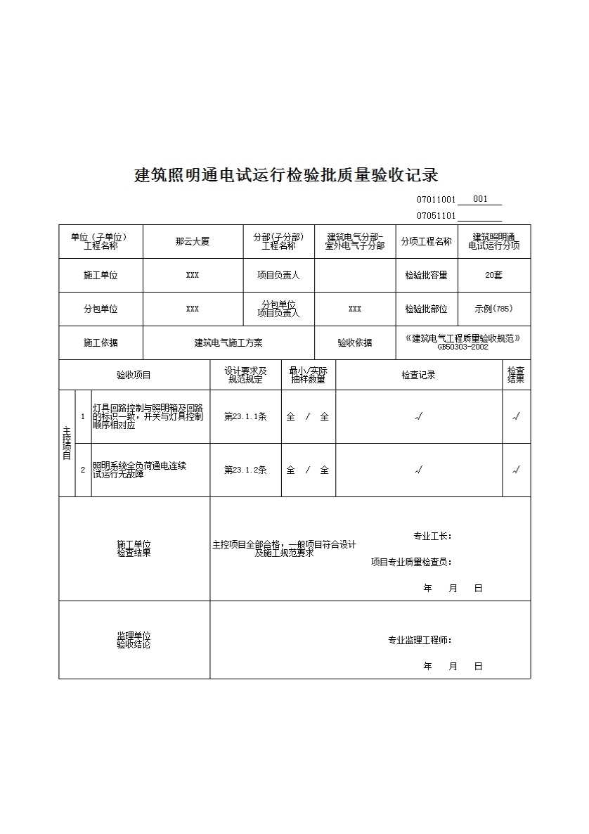 23.1.2公用建筑照明系统通电连续试运行时间应为24h,民用住宅照明系统通电连续试运行时间应为8h。所有照明灯具均应开启,且每2h记录运行状态1次,连续试运行时间内无故障。