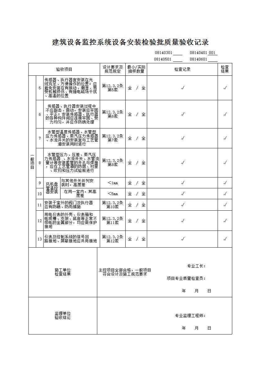 08140401_建筑设备监控系统设备安装检验批质量验收记录