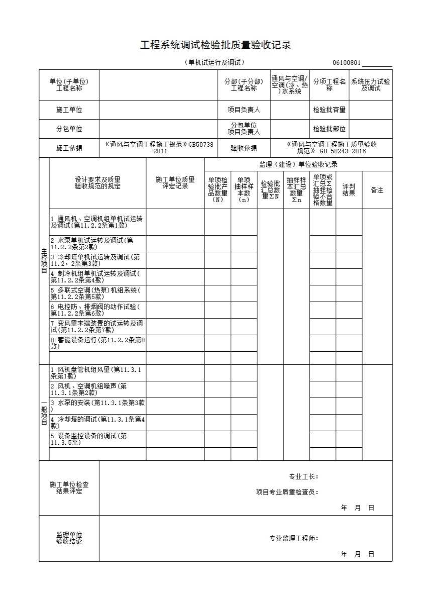 06100801_工程系统调试检验批质量验收记录(单机试运行及调试)