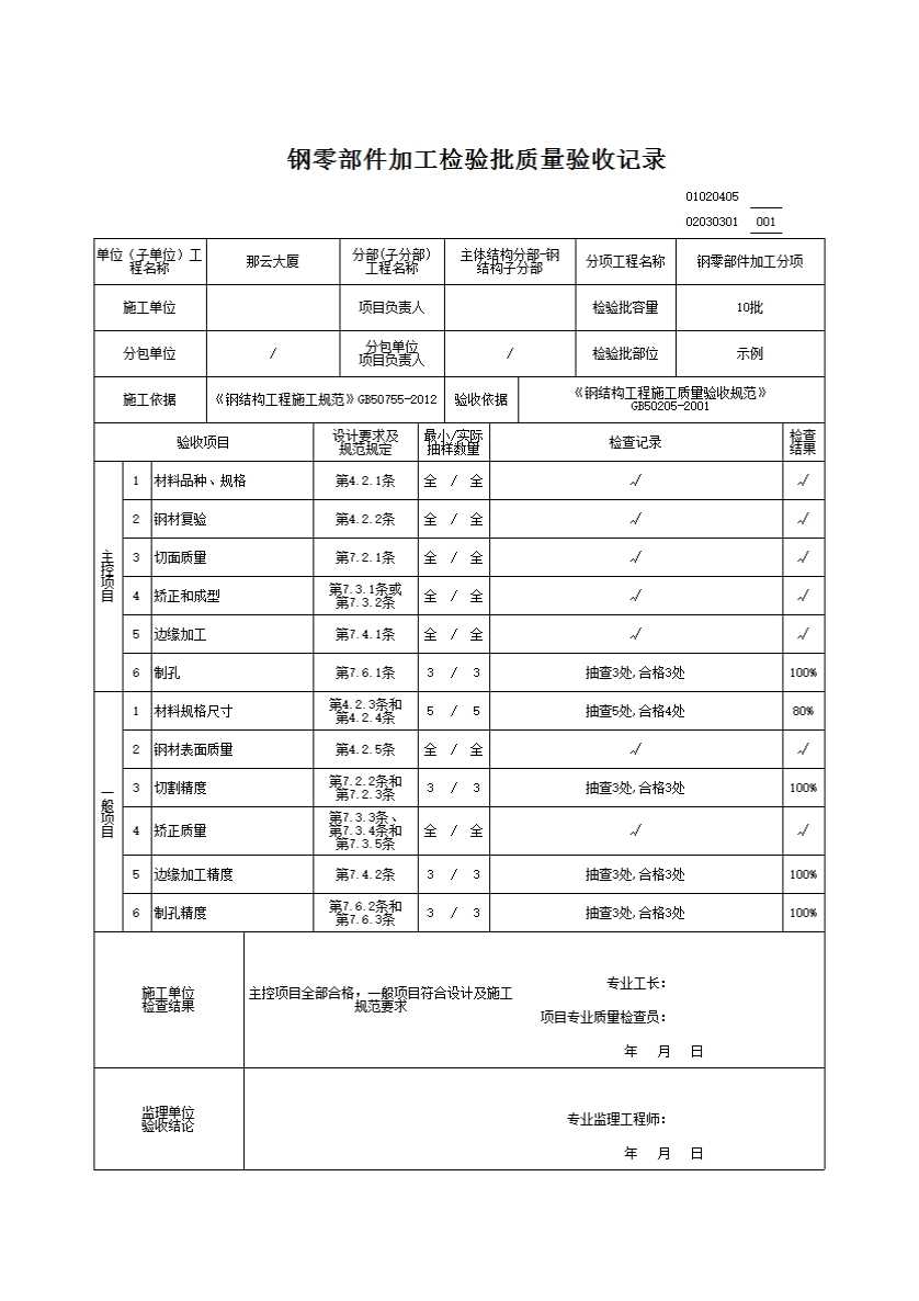 本表适用于钢结构制作及安装中钢零件及钢部件加工的质量验收。