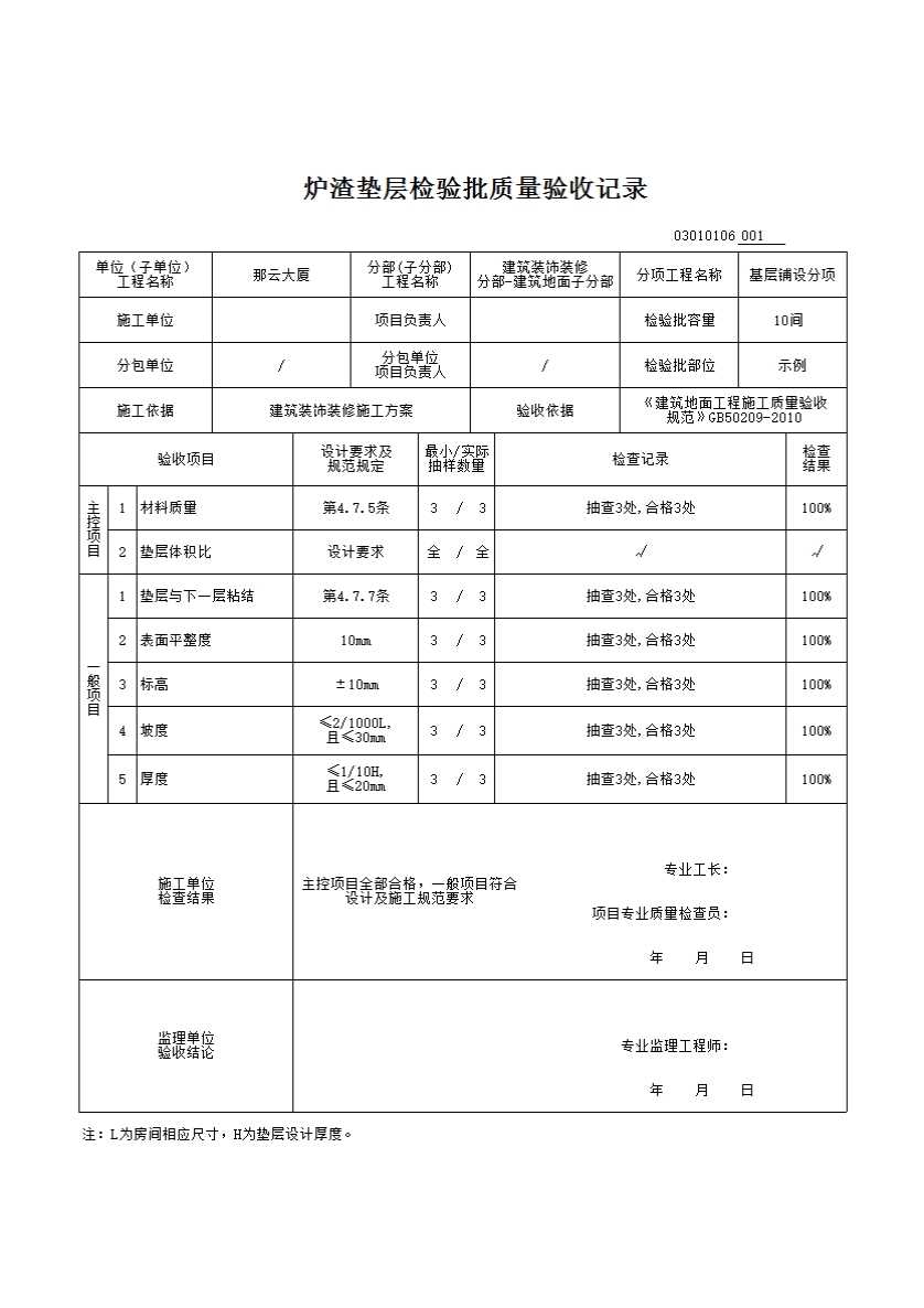 4.7.6 炉渣垫层的体积比应符合设计要求。