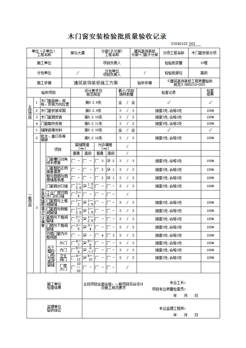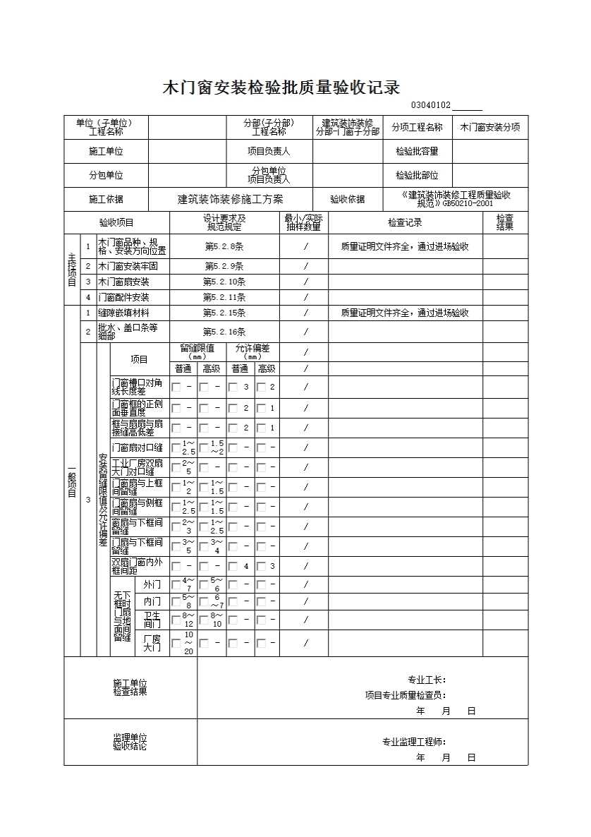 5.2.8 木门窗的品种、类型、规格、开启方向、安装位置及连接方式应符合设计要求。