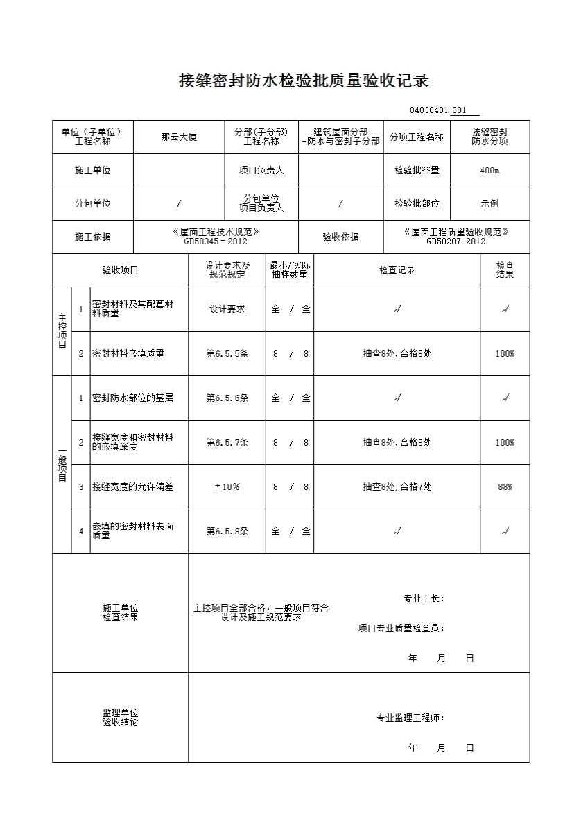 6.5.7 接缝宽度和密封材料的嵌填深度应符合设计要求,接缝宽度的允许偏差为±10%。