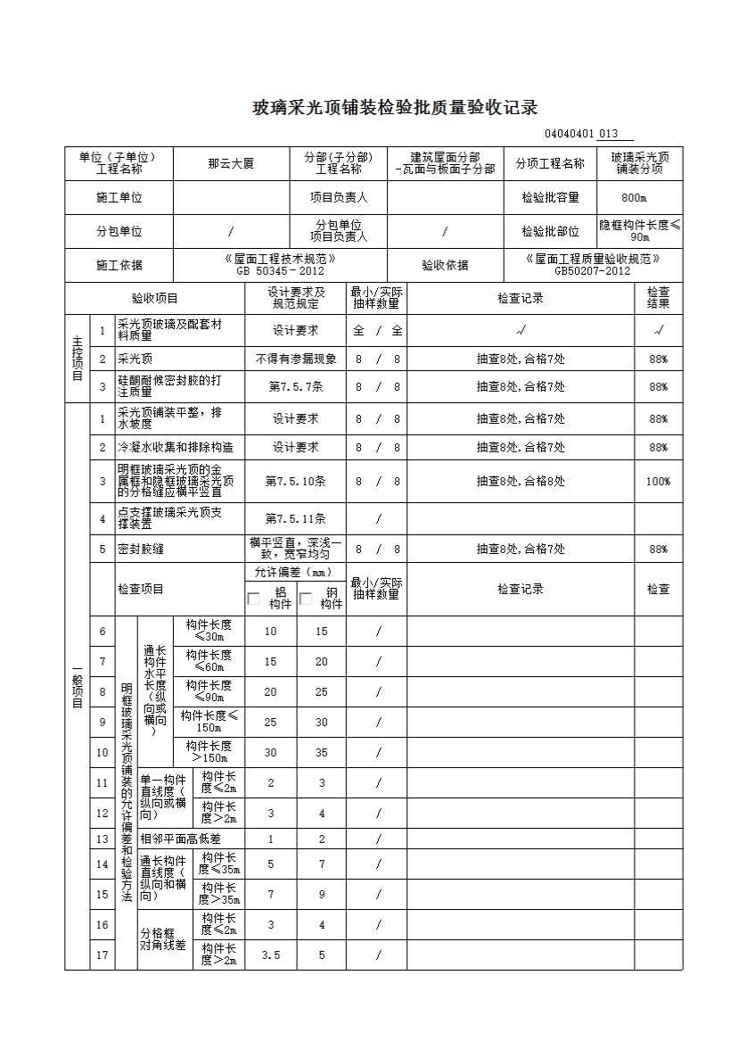 7.5.13 明框玻璃采光顶铺装的允许偏差和检验方法,应符合表7.5.13的规定。