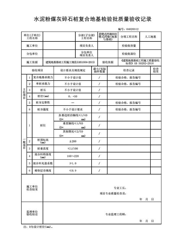 04020312 水泥粉煤灰碎石桩复合地基检验批质量验收记录
