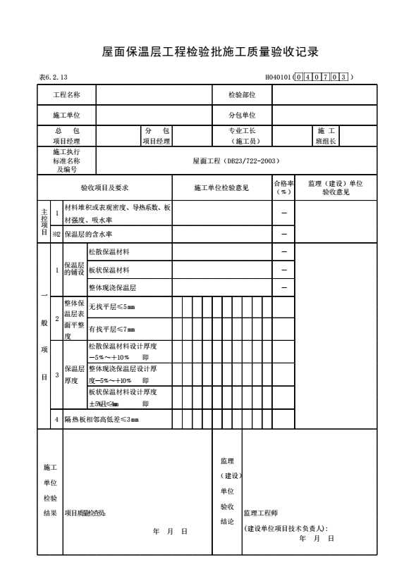 表格名称:屋面保温层工程检验批施工质量验收记录