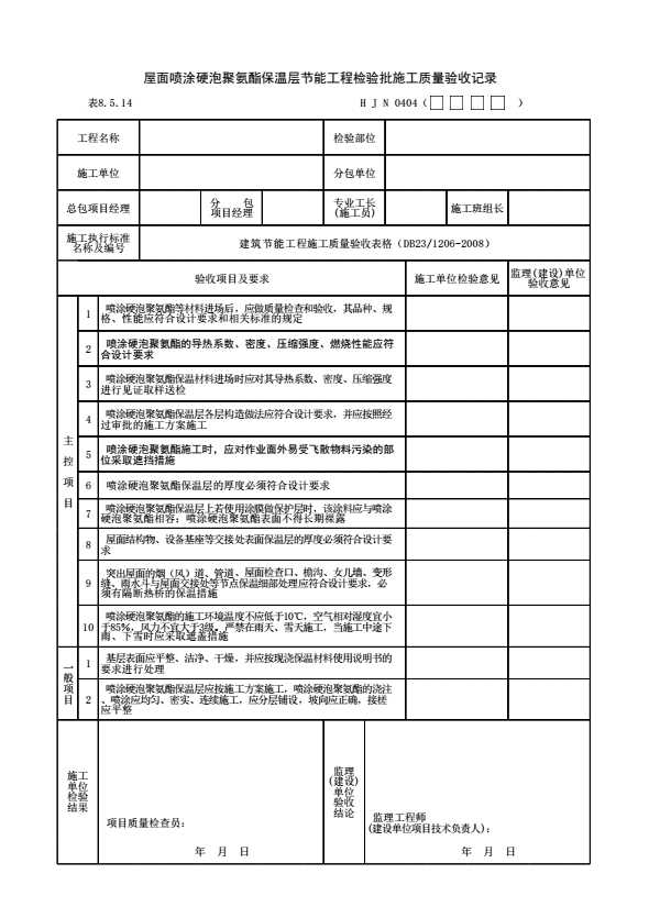 表格名称:表8.5.14 屋面喷涂硬泡聚氨酯保温层节能工程检验批施工质量验收记录