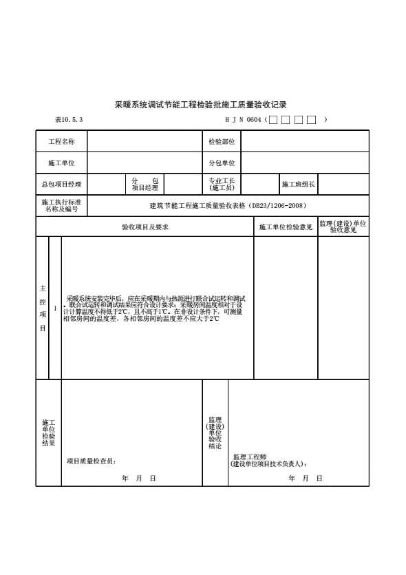 表格名称:表10.5.3 采暖系统调试节能工程检验批施工质量验收记录