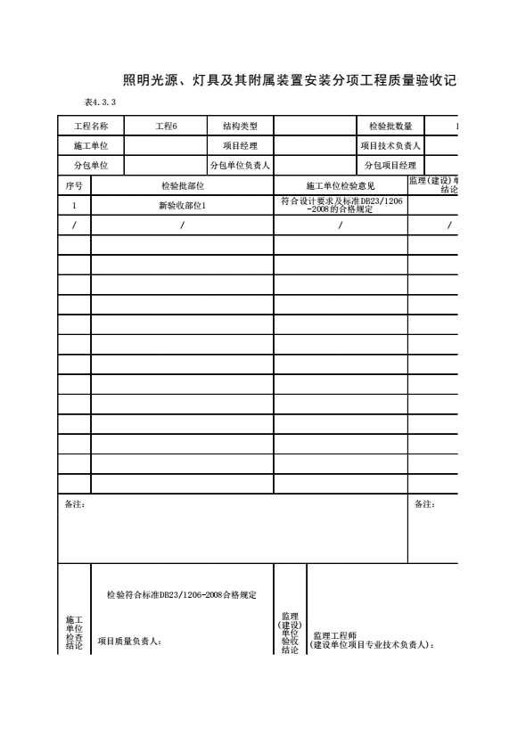 黑龙江省建筑节能工程施工质量验收表(DB23/1206-2008)