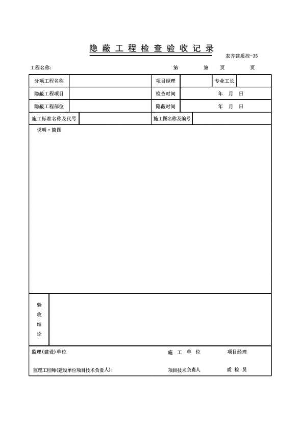 表格名称:表齐建质控-35隐蔽工程检查验收记录