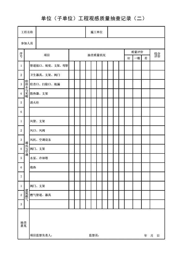 表格名称:单位(子单位)工程观感质量抽查记录(二)