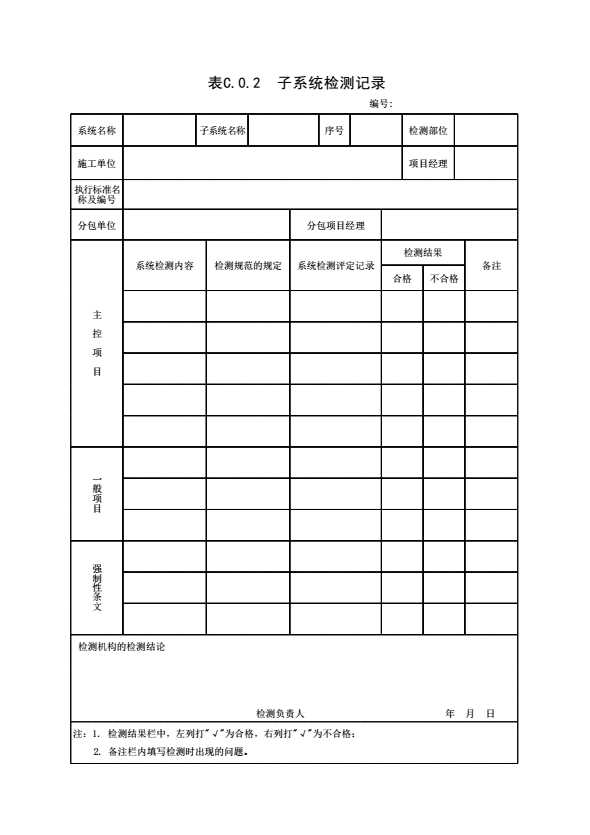 表格名称:子系统检测记录