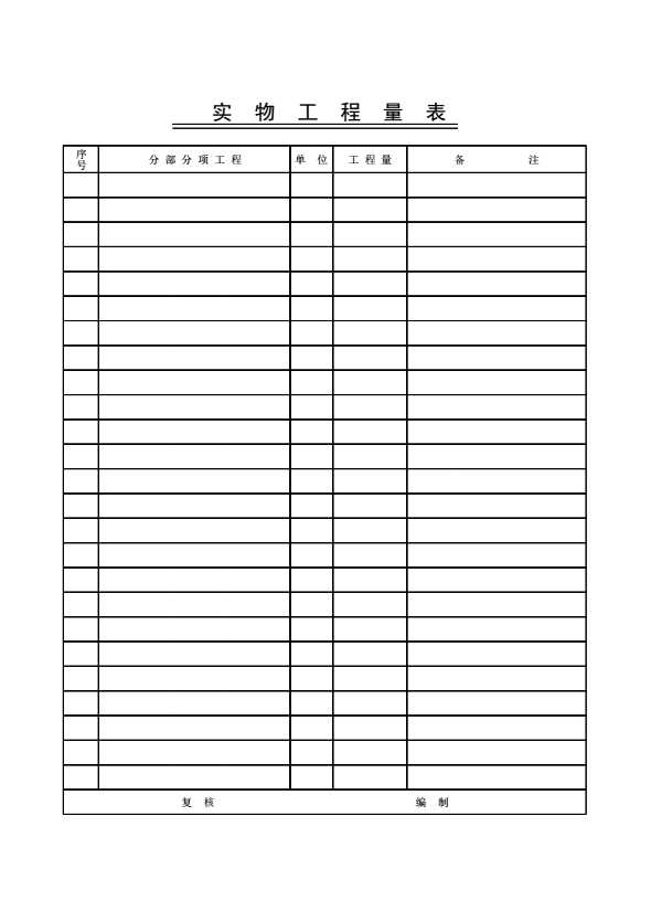 实物工程量表