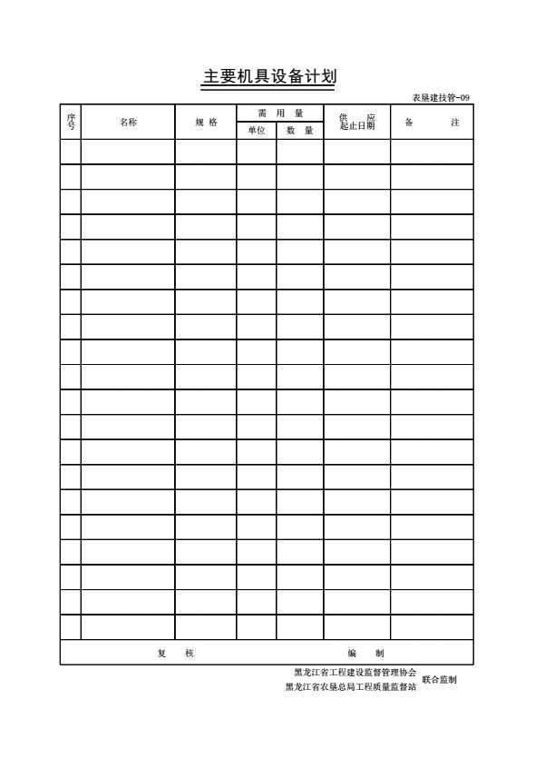 表格名称:表垦建技管-09主要机具设备计划