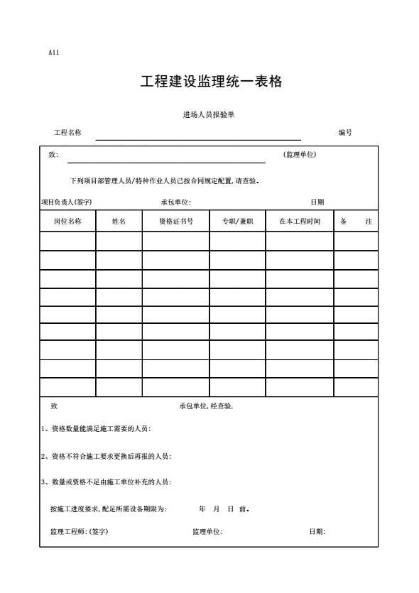 A11工程建设监理统一表格
