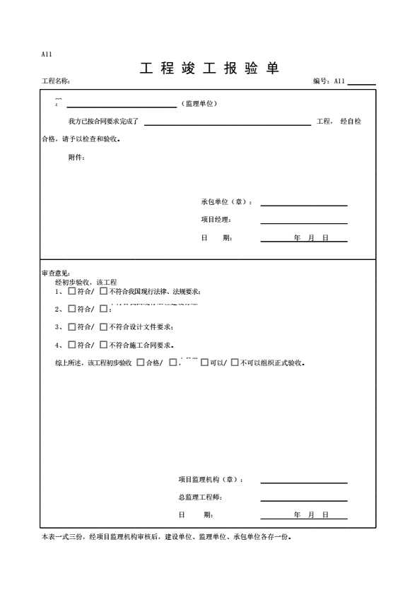 表格名称:A11工程竣工报验单