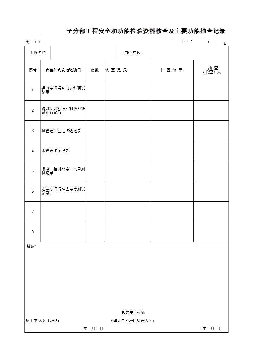 表格名称:送排风系统子分部工程安全和功能检验资料核查及主要功能抽查记录