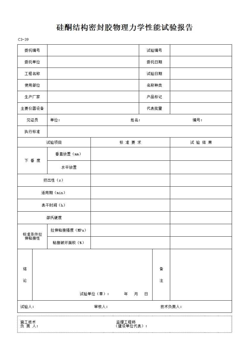 表格名称:C3-39硅酮结构密封胶物理力学性能试验报告