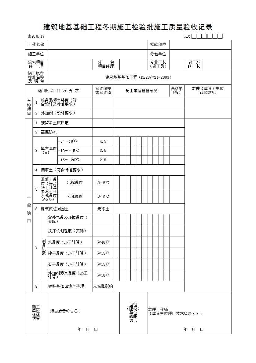 表格名称:建筑地基基础工程冬期施工检验批施工质量验收记录