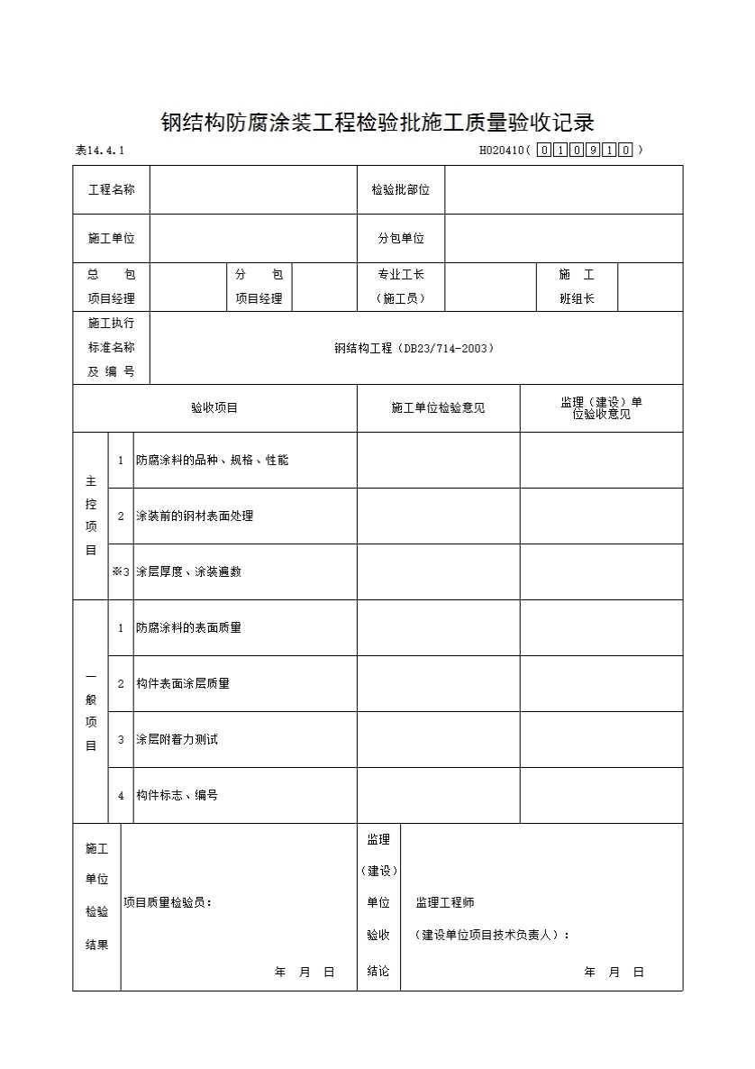 表格名称:钢结构防腐涂装工程检验批施工质量验收记录
