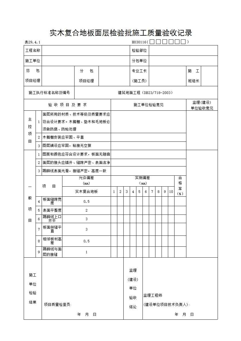 表格名称:实木复合地板面层检验批施工质量验收记录