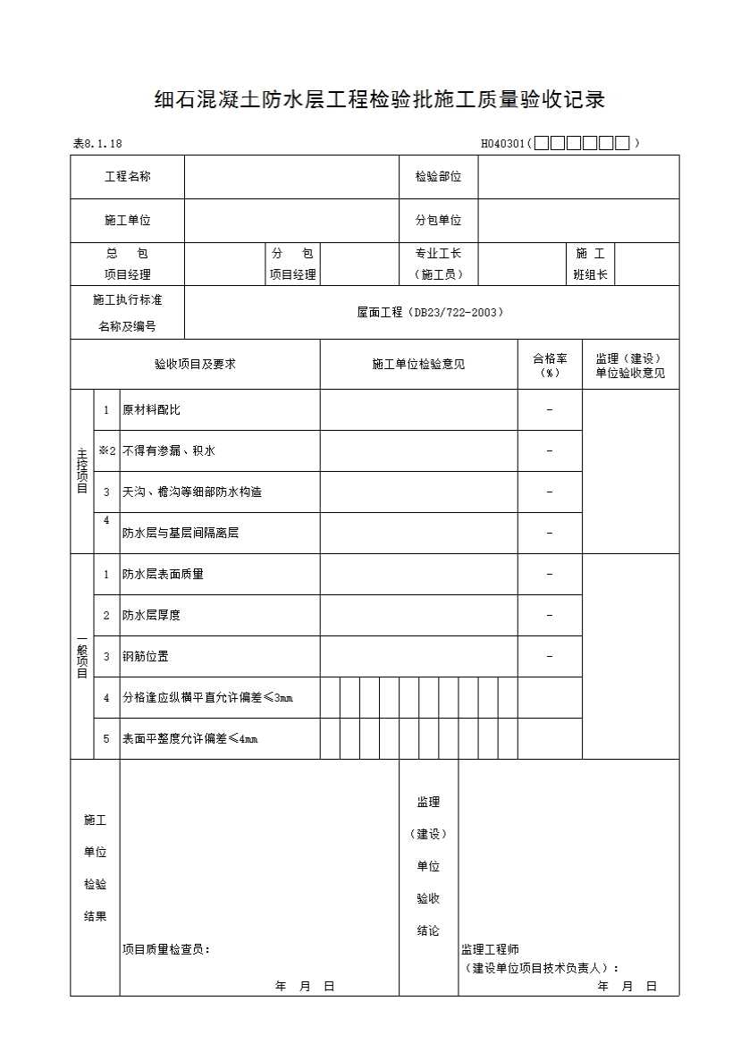 表格名称:细石混凝土防水层工程检验批施工质量验收记录