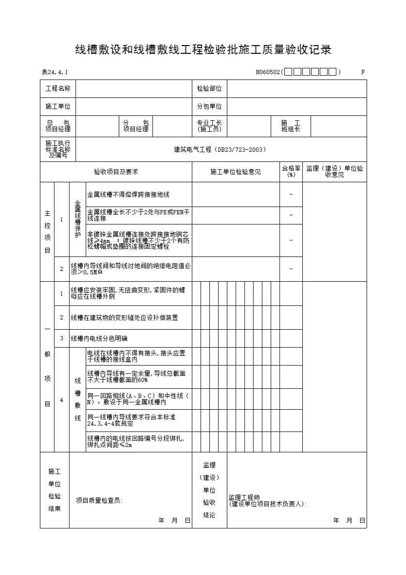 表格名称:线槽敷设和线槽敷线工程检验批施工质量验收记录