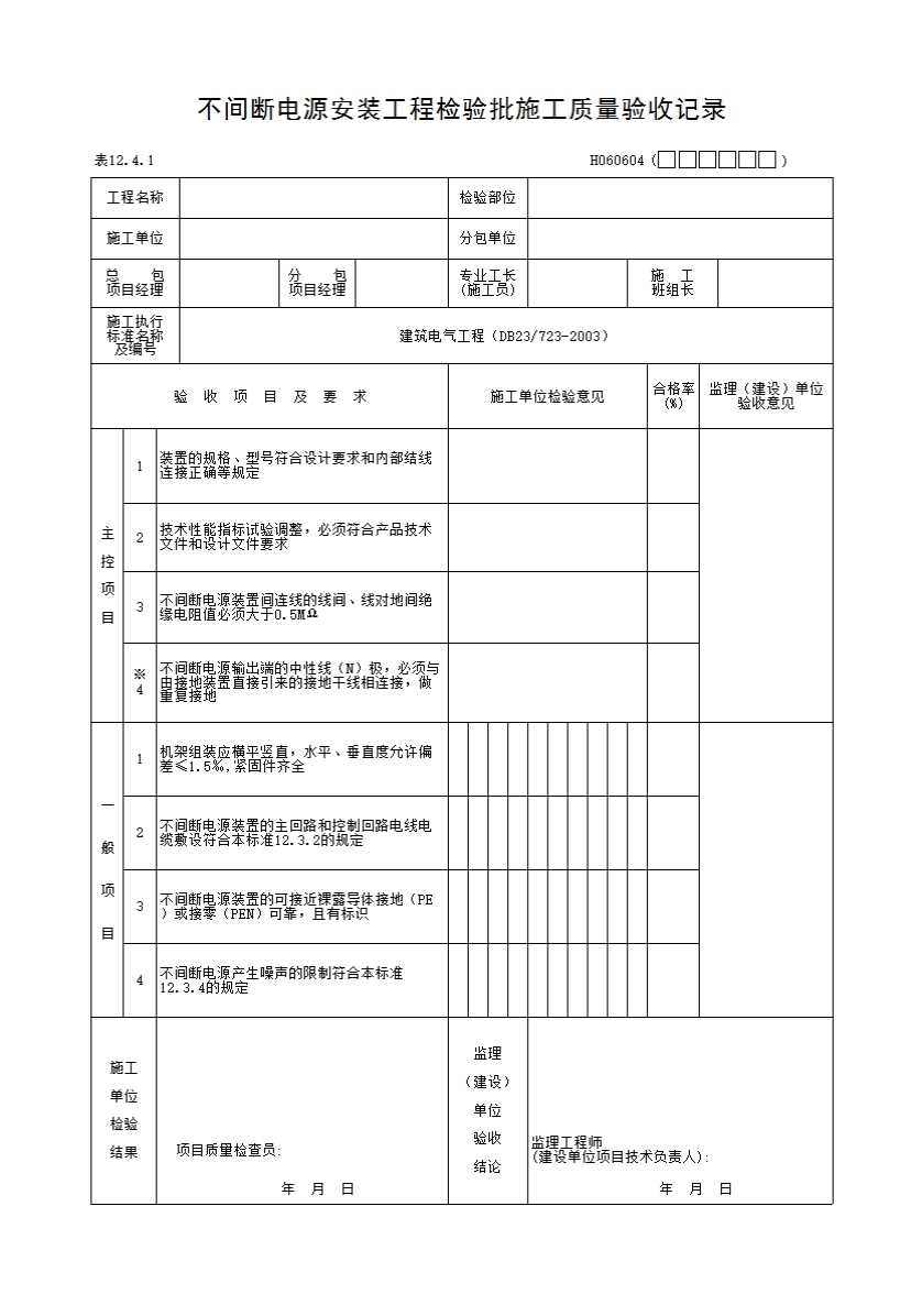 表格名称:不间断电源安装工程检验批施工质量验收记录