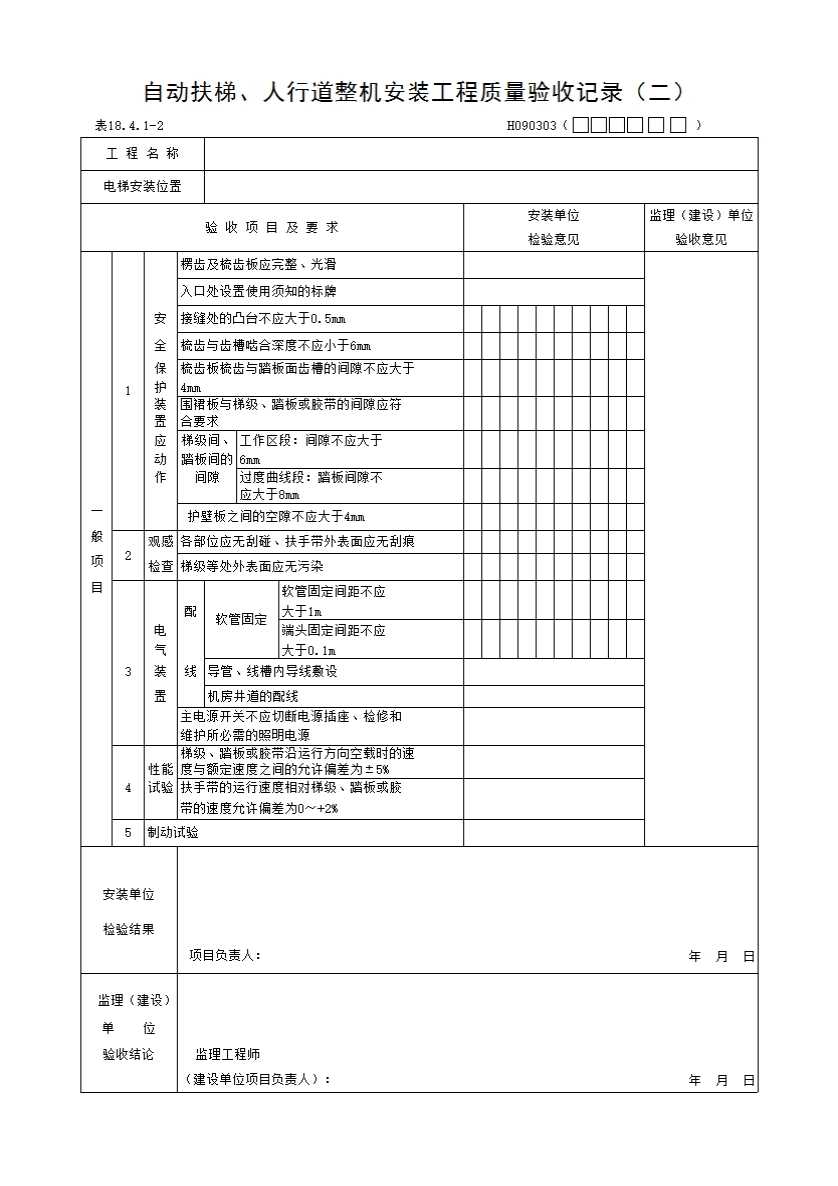 表格名称:自动扶梯、人行道整机安装工程质量验收记录(二)