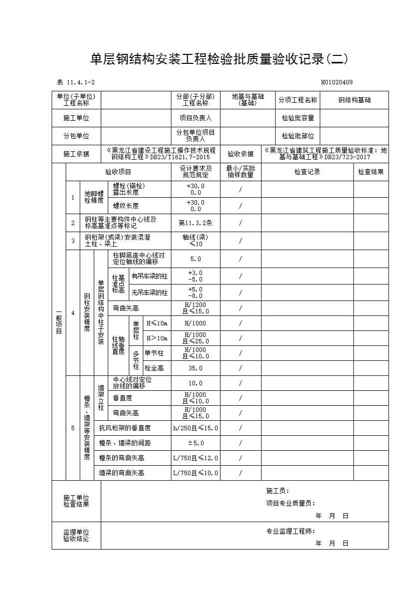 H01020409_单层钢结构安装工程检验批质量验收记录(二)