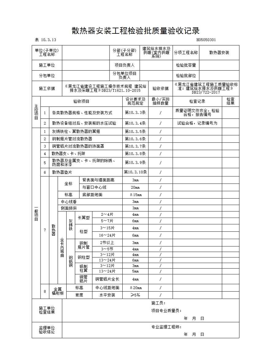 散热器安装工程检验批施工质量验收