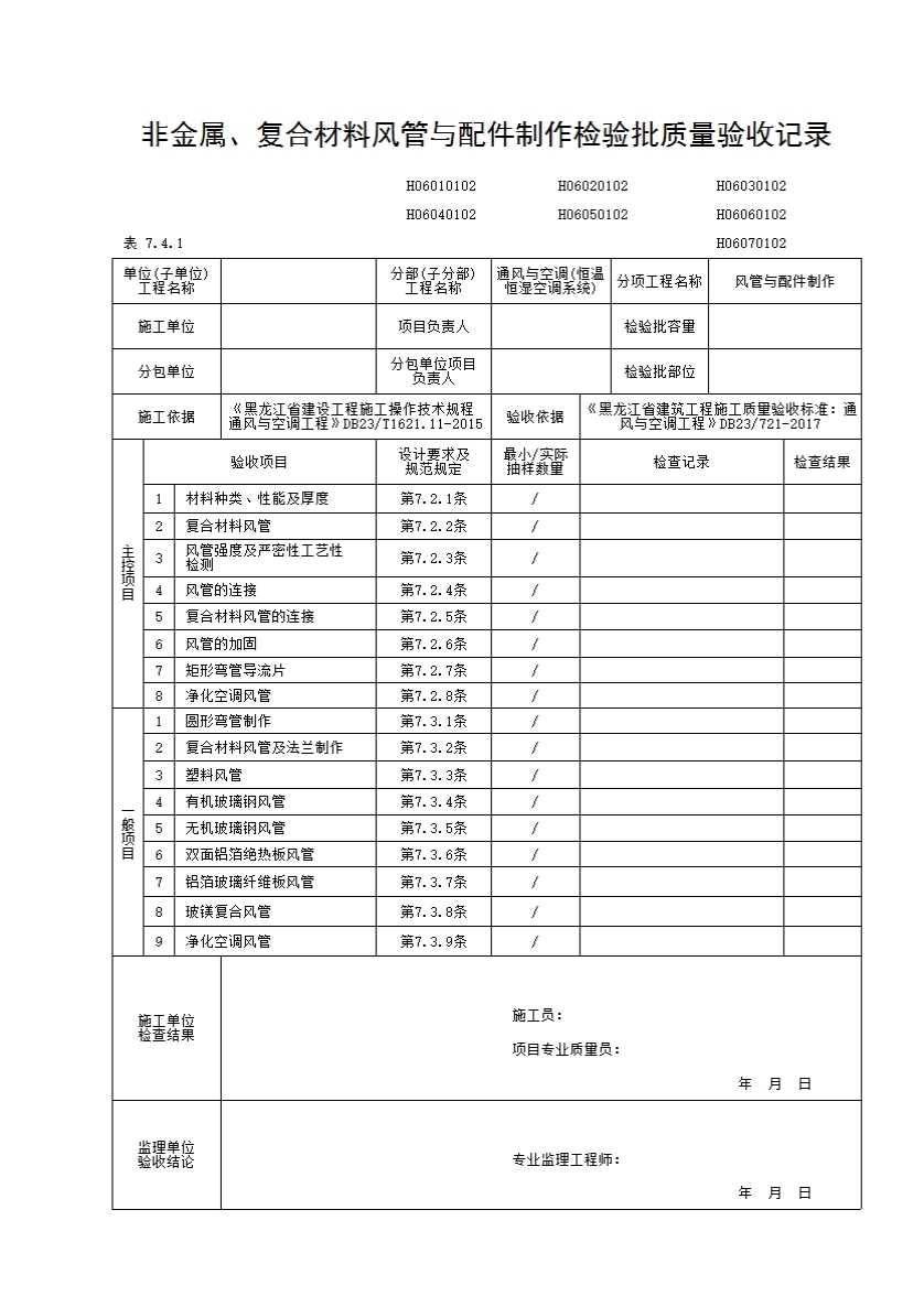 H06060102_非金属、复合材料风管与配件制作检验批质量验收记录