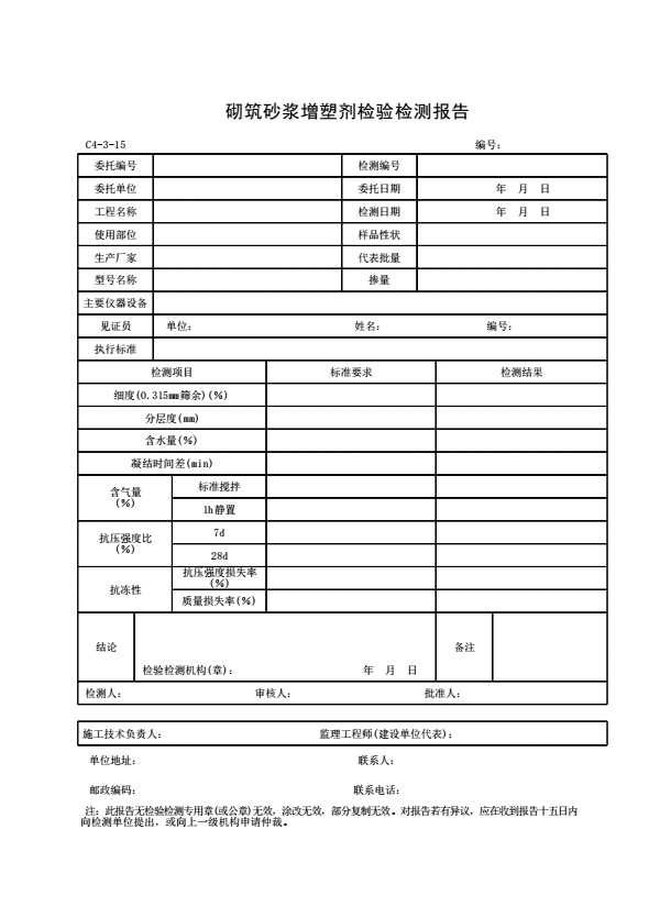表格名称:C4-3-15 砌筑砂浆增塑剂检验检测报告