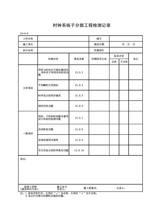 表格名称:C6-6-9 时钟系统子分部工程检测记录