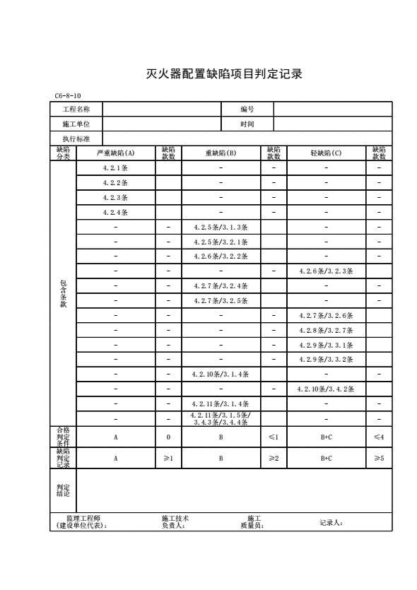 表格名称:C6-8-10 灭火器配置缺陷项目判定记录