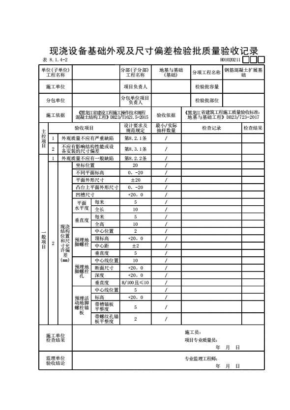 H01020211 现浇设备基础外观及尺寸偏差检验批质量验收记录