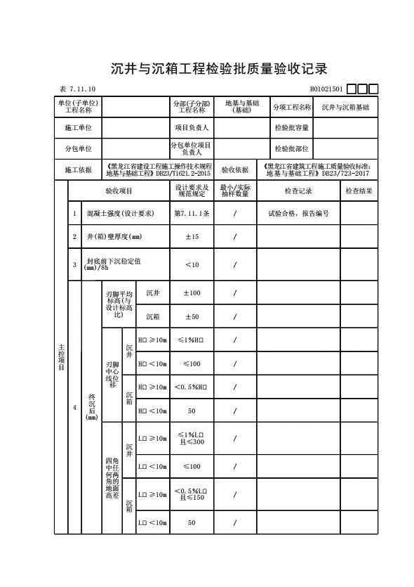 7.11.6 垂直度允许偏差值≤1%H1。H1为设计沉井与沉箱高度(单位:mm)。