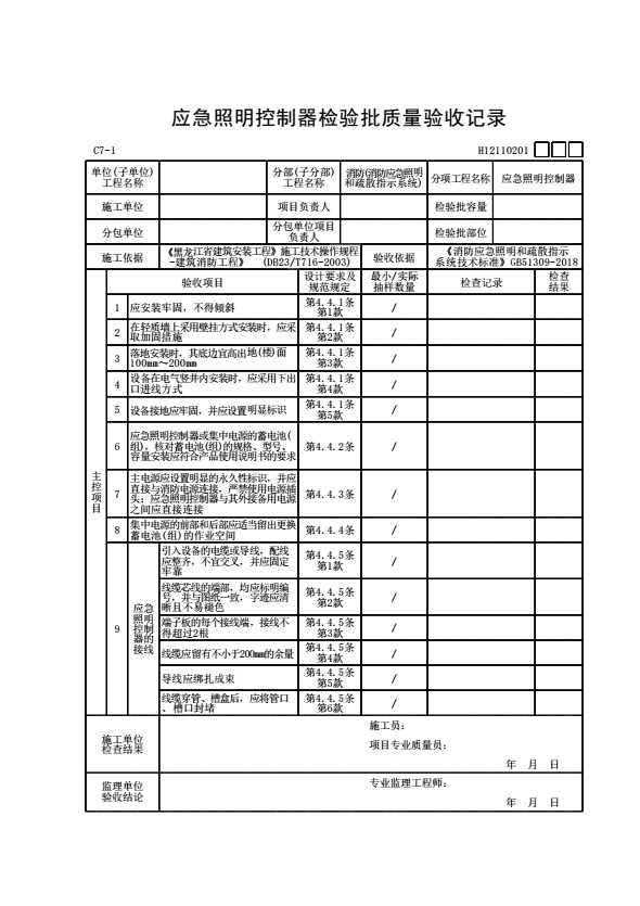 表格名称:H12110201 应急照明控制器检验批质量验收记录