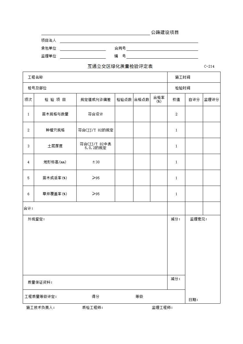 表格名称:C-214 互通立交区绿化质量检验评定表