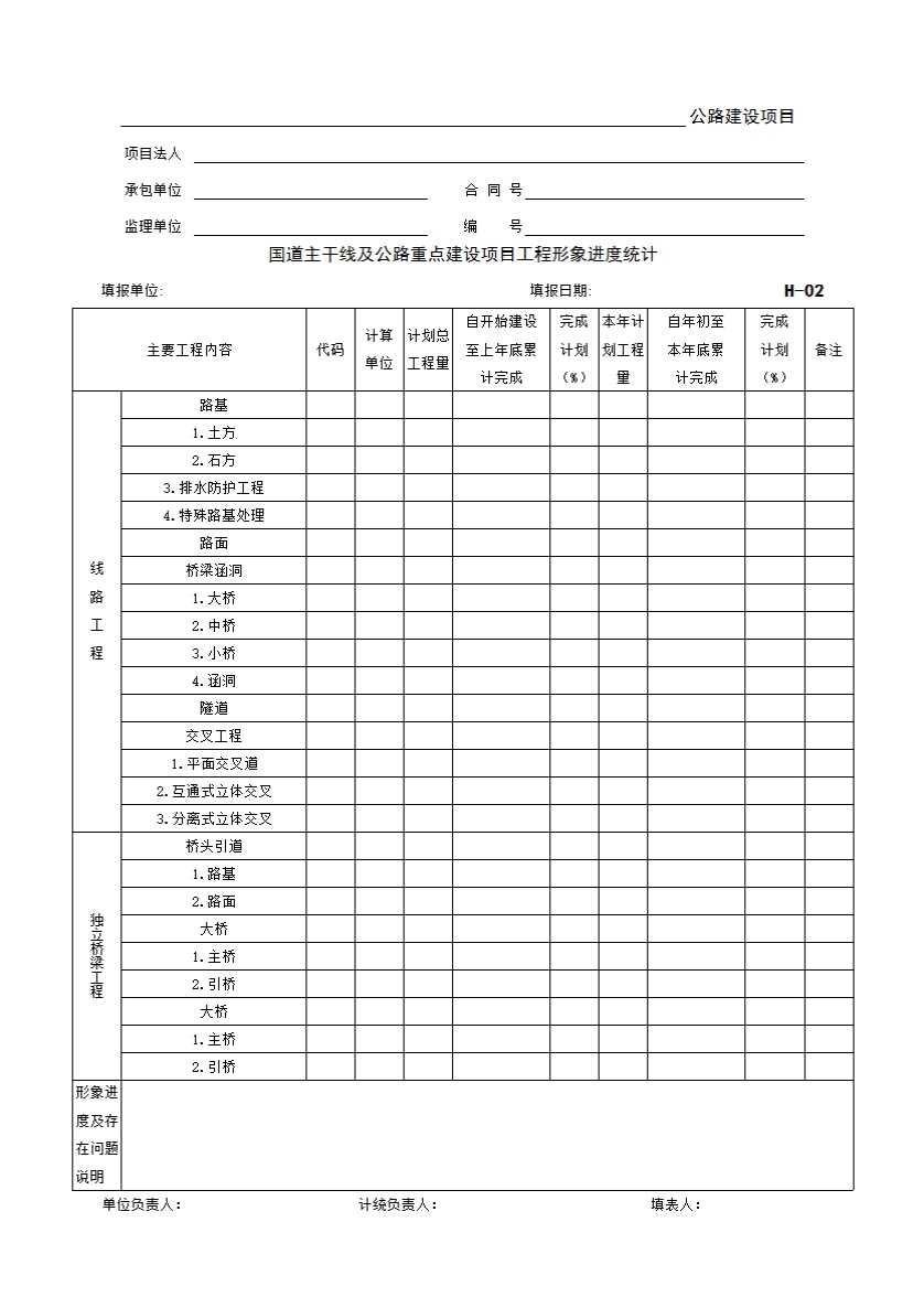 表格名称:H-02 国道主干线及公路重点建设项目工程形象进度统计