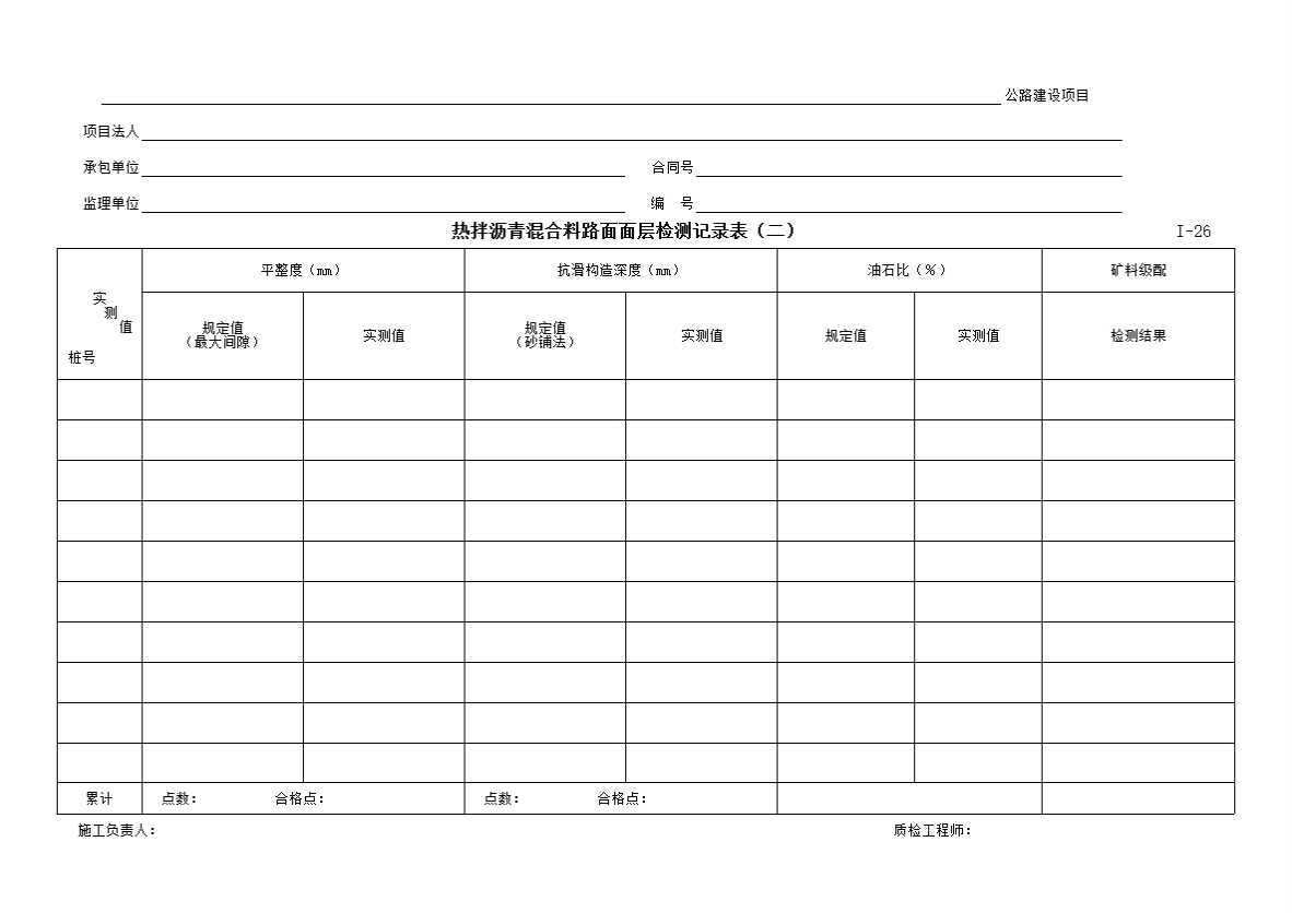 I-26热拌沥青混合料路面面层检测记录表(二)