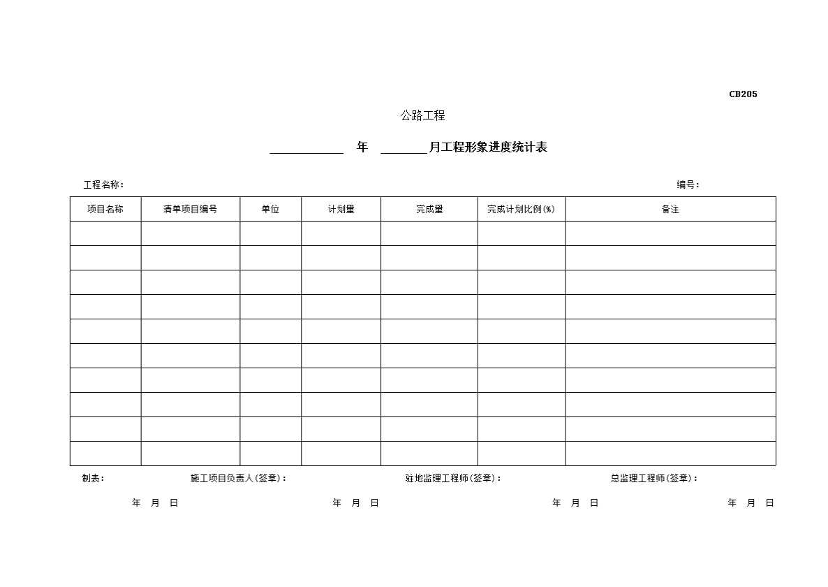 CB205 ____年____月工程形象进度统计表