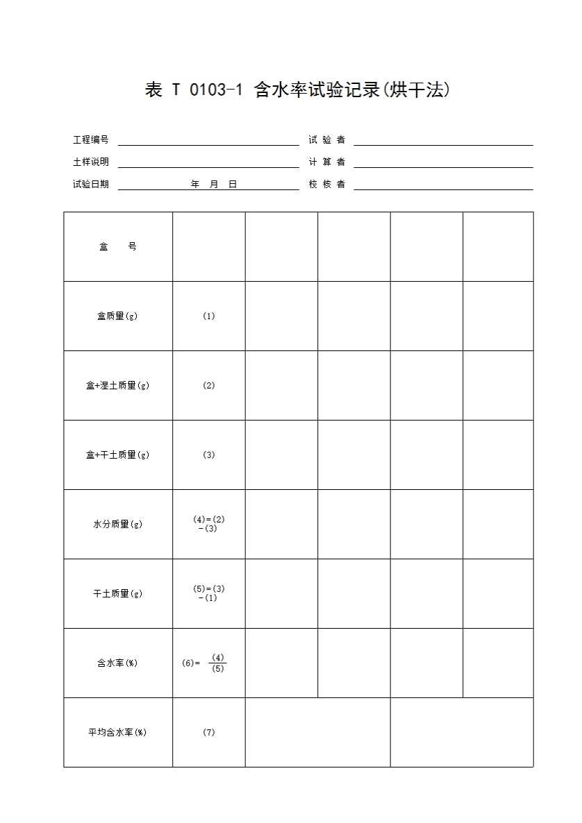 表格名称:表T0103-1 含水率试验记录(烘干法)