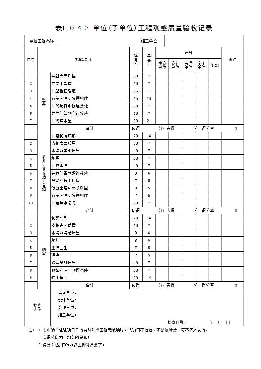 表E.0.4-3 单位(子单位)工程观感质量验收记录
