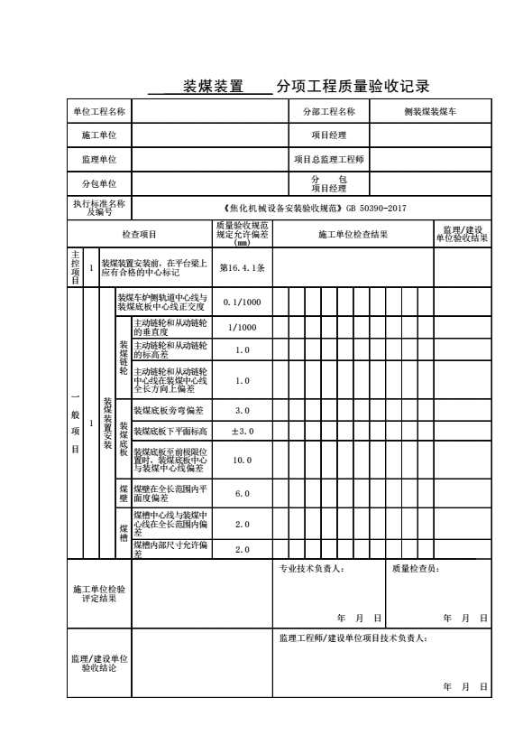 表格名称:装煤装置分项工程质量验收记录